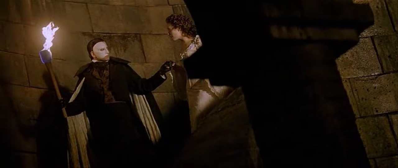 W nocy po premierze Upiór zabiera Christine do swej kryjówki. Jak przystało na prawdziwego Upiora, nosi on maskę okrywającą połowę jego twarzy. Młoda śpiewaczka jest zaciekawiona Upiorem, a ten wydaje się w niej być zakochany. Chce też zadbać o jej karierę. Jest o nią zazdrosny. Upiór nie chce pokazać swej twarzy, na zdjęcie maski reaguje złością.