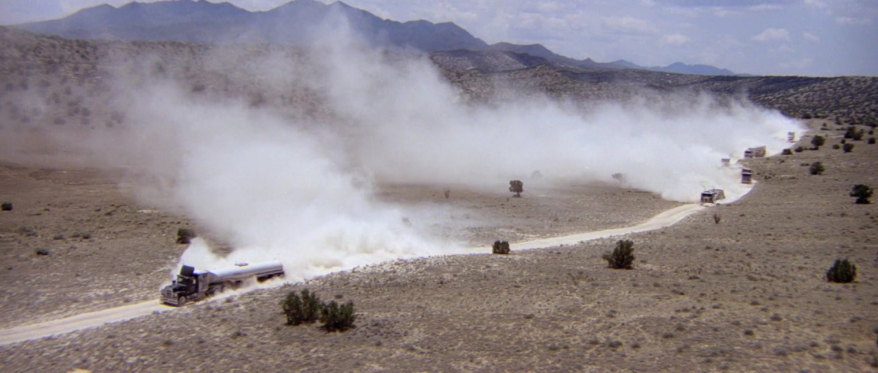 „Konwój” to typowo amerykański film drogi. Są potężne pojazdy, jest policja siedząca im na karku, jest braterstwo kierowców – dołączają się do konwoju, bo ten po prostu jedzie. Nie przepadają za policjantami, chcą im uciec. Są twardzielami, którym niestraszne są bójki w przydrożnych barach, jakich nie mało w USA.
