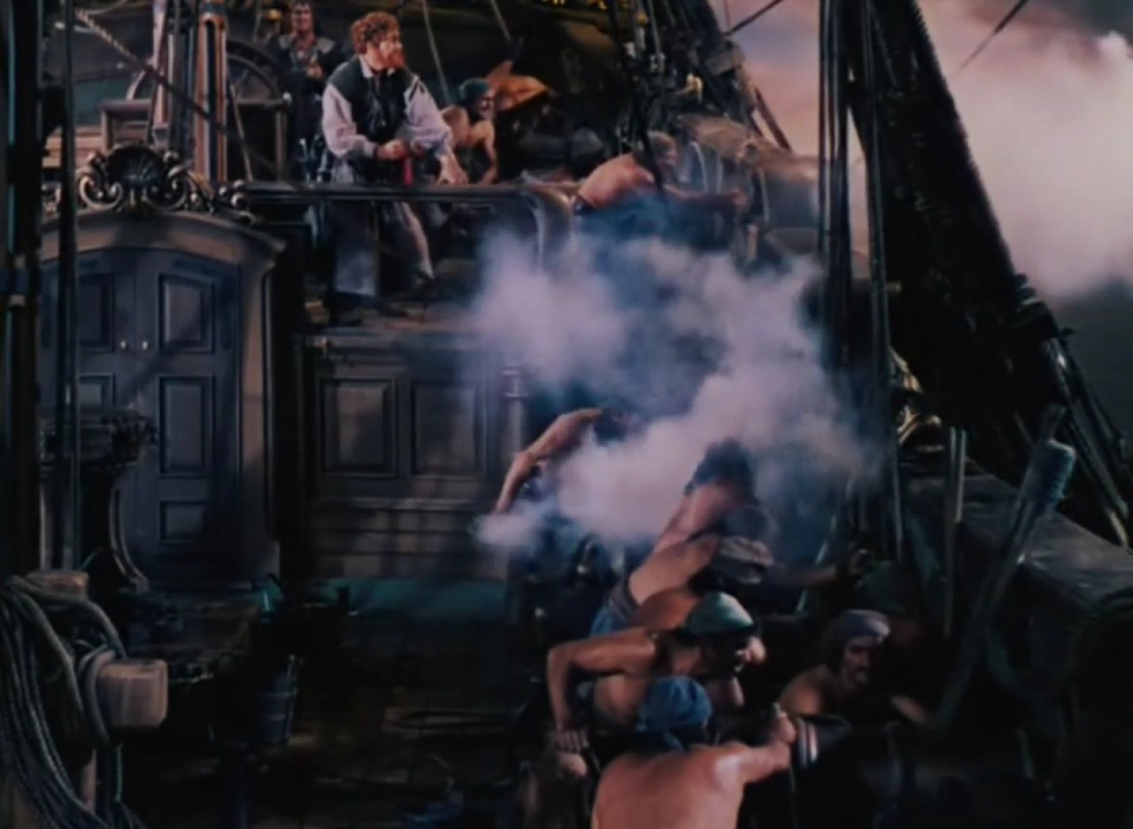 Cóż jest w tym filmie, że zwrócił moją uwagę? Właśnie walki, walki okrętów są dynamiczne, działa strzelają, maszty się walą, wygląda to tak, jakby moim zdaniem, miało to wyglądać. Owszem miejscami są zabawne – szczególnie jak są przyspieszone, komicznie wyglądają aktorzy, jak skaczą i machają bronią – jak małpki. :-) Ale sceny walk były użyte w czołówce legendarnego już programu „Morze” – i to właśnie to mnie zaciekawiło, cóż to za film z tak ładnie wyglądającymi walkami.