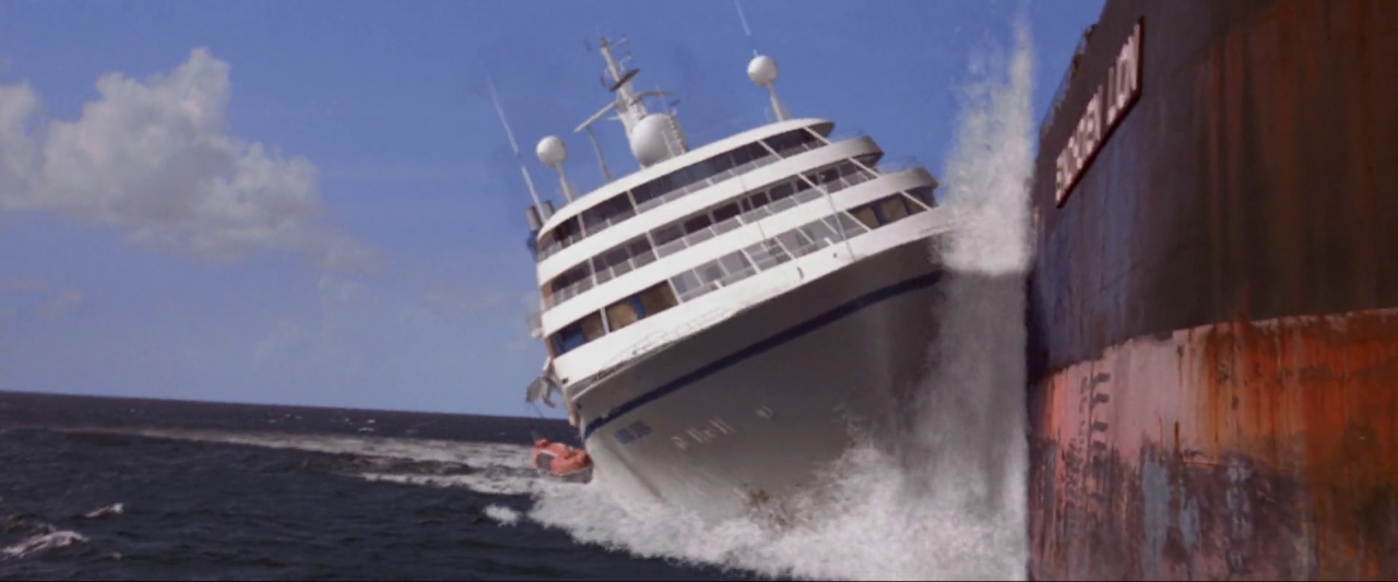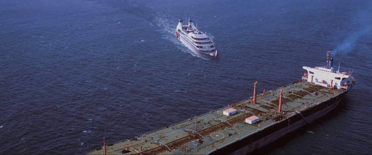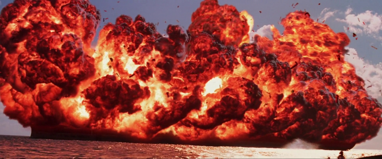 Sam statek zwrotnością przypomina myśliwiec, chciałbym taki zobaczyć. :-) W końcowych scenach , kiedy pomimo tej zwrotności wpada na żaglówki, te, jak to żaglówki – wybuchają. Może przemycają paliwo? :-) Tylko po co?