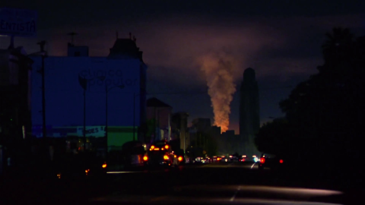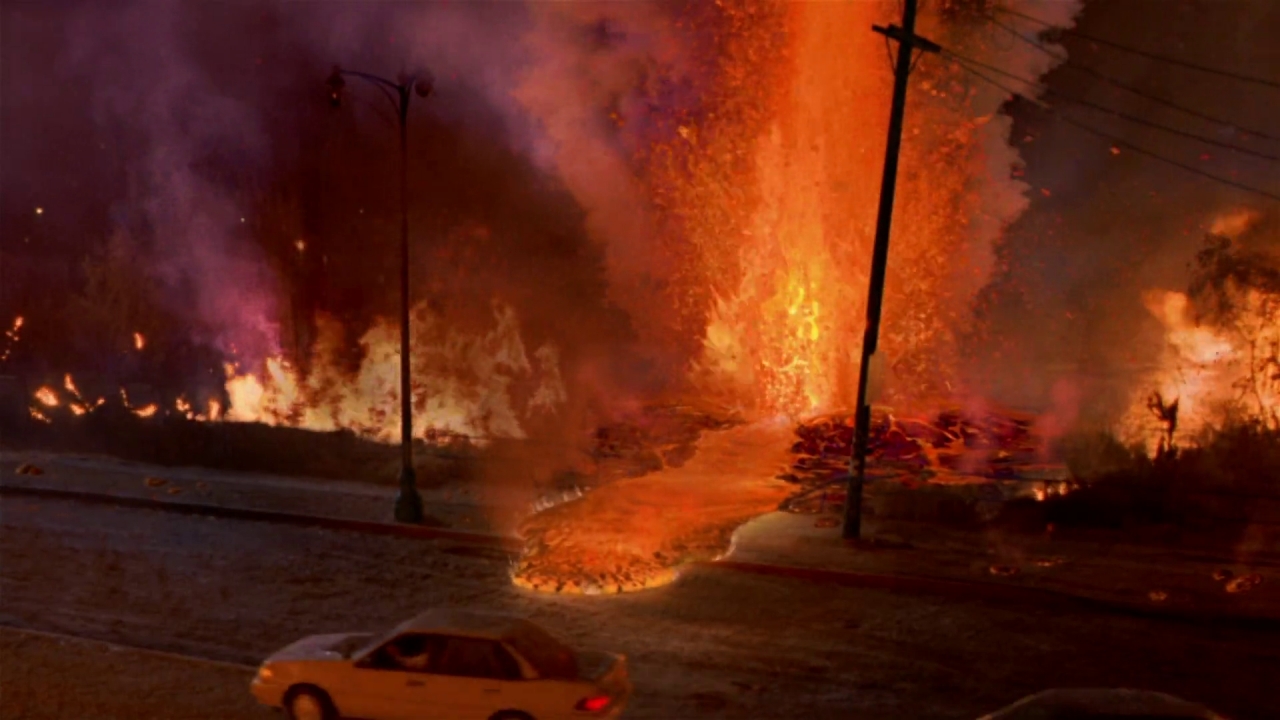 W międzyczasie Mike z córką jedzie do Centrum Kryzysowego. Ulice są jakby zasnute mgłą, są też ciemne, w mieście nie ma prądu. Po paru minutach jazdy z nieba zaczynają spadać kamienie, popiół, a nawet rozpalone skały. Okoliczne budynki zaczynają się palić. Woda w okolicznych sadzawkach zaś się gotuje. Nieśmiałe przypuszczenia Amy zdają się spełniać. Lawa zpod Los Angeles chce wydostać się na powierzchnię. W Los Angeles wybucha wulkan.