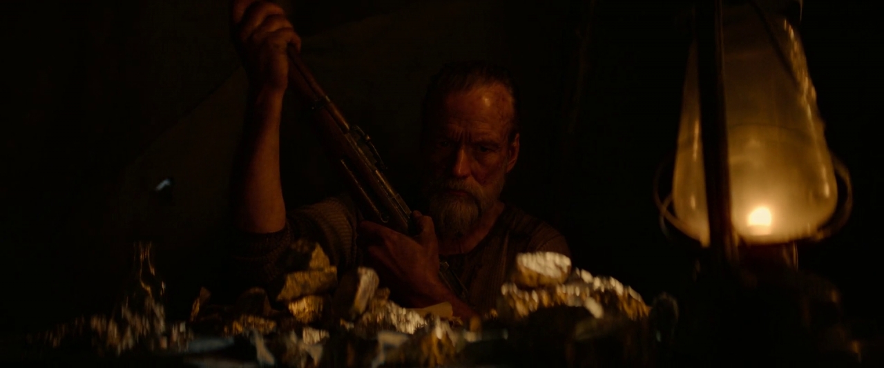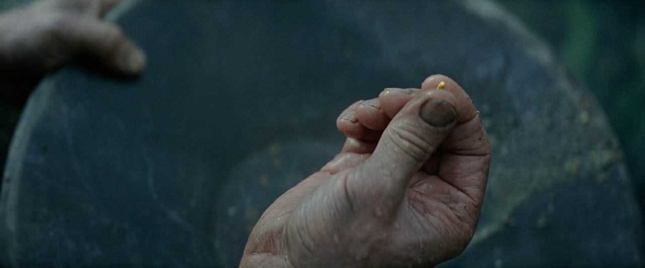 Szczęście uśmiechnęło się do niego. W rzece odnalazł złoty pył, w okolicy jest złoto!. Teraz przyszła bardziej męcząca część pracy, trzeba było wgryźć się w ziemię, zacząć kopać. Po pewnym czasie i niezbyt głębokich wykopach szczęście głośno zaśmiało mu się w twarz. Mężczyzna odnajduje żyłę złota! To, co może wydobywa. Złoto jest łatwiej przetransportować niż na przykład taką ropę, którą znalazł, w dość podobnej okolicy, Daniel Plainview w „Aż poleje się krew”. Czeka go teraz droga, do miejsca, gdzie może to spieniężyć.