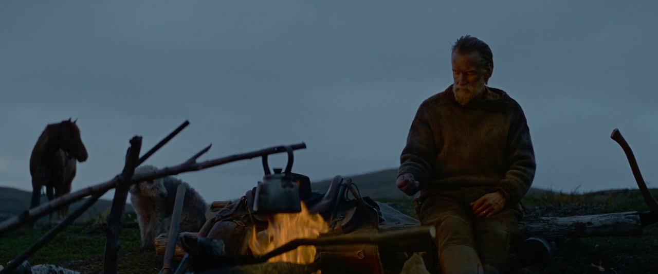 Miejsce, w którym się znajduje, to prawdziwe pustkowie, brak ludzi, zwierząt, drzewa i roślinność rośnie sporadycznie. Z dala tylko słychać odgłosy dalekich bitew, czasami jakieś samoloty przelecą. Dla kogoś, kto lubi ciszę, spokój i samotność, to niemal raj. Mężczyzna jednak nie jest sam, ma konia i psa. Piesek nie jest z rodzaju tych, które aportują deski surfingowe, czy podkłady kolejowe, innymi słowy jest malutki. Nie widać, aby samotność doskwierała człowiekowi.