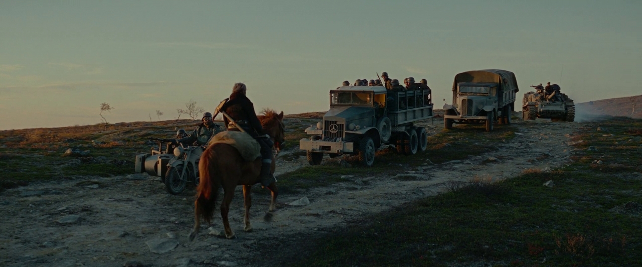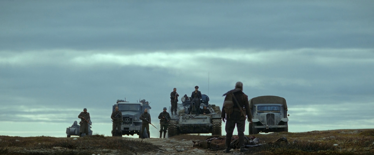 Podczas podróży napotyka grupę niemieckich żołnierzy. Mają ciężarówki z piechotą i czołg. Mężczyzna przejeżdża, ignorując wojaków. Ci również nie bardzo się nim interesują, ot spotkanie na drodze. Dowódca (Aksel Hennie) niemieckiej grupy wspomina tylko, że i tak czeka go dalej śmierć.