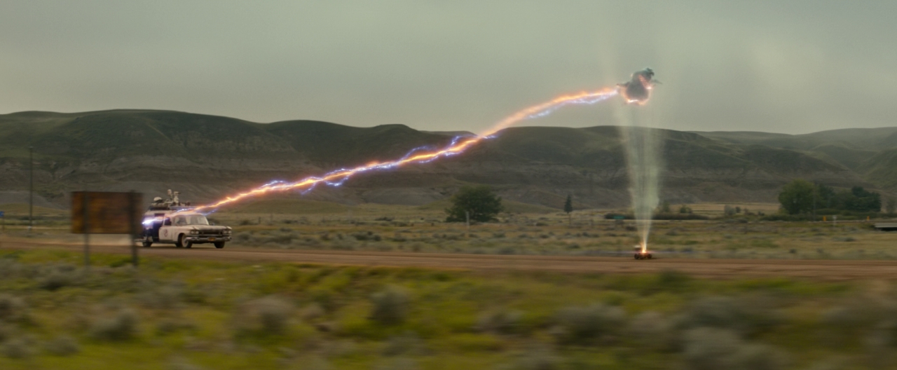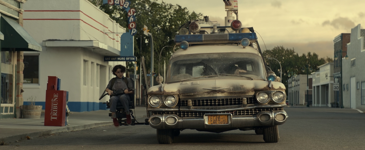 Nie mogący zasnąć Trevor, podczas poszukiwania zasięgu sieci komórkowej, zagląda do szopy. Tam szybko jego uwagę zwraca coś dużego przykrytego plandeką. Po jej odkryciu widzi część słynnego logo Pogromców Duchów. To ECTO-1.