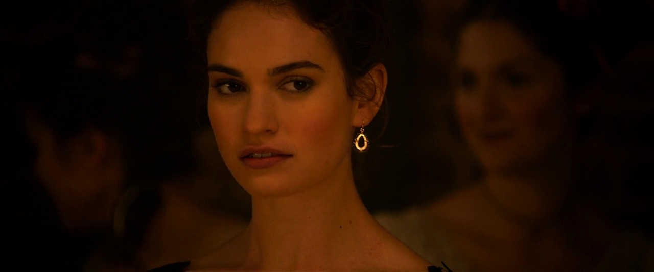 Owszem, kapitan Bingley robi wrażenie. Jemu od razu do oka wpada Jane (Bella Heathcote), stwierdza, że to najpiękniejsza istota, jaką widział. Natomiast pułkownik Darcy wpada w oko Elizabeth (Lily James). Niestety on jest ślepy na wdzięczenie się niewiasty. Taniec to coś dla dzikusów, każdy to potrafi, nawet zombie. On w tym nie gustuje. Wzgardzona dziewczyna opuszcza przyjęcie. Na zewnątrz spotyka panią Featherstone, która teraz jest… zombie. Rozmowa nie trwa długo, przerywa ją Darcy likwidując stwora. Co prawda pani Featgerstone chciała coś przekazać Jane, ale jest już za późno.