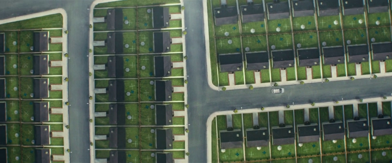 Podczas kiedy para ogląda ogród, Martin… gdzieś ginie. Jego samochodu również nie ma. Tak jakby podczas prezentacji pojechał sobie. Gemma i Tom postanawiają wracać, nie mają przecież innego wyjścia. Pojawia się problem, monotonia osiedla, brak punktów charakterystycznych, identyczne domy, na identycznych ulicach, powoduje, że para się gubi. Kluczy po uliczkach, ale zawsze trafia pod ten sam dom, który oglądali. Podczas jazdy nie widzą nikogo. Osiedle jest absolutnie puste. Nie ma przechodniów, nie słychać bawiących się dzieci, nie ma ruchu drogowego. Jak po jakiejś apokalipsie.