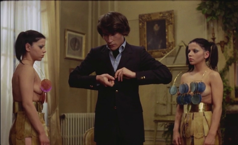 Grupa tajemniczych, zamaskowanych postaci pobiera młodej kobiecie (Caroline Cartier) krew. Ona sama też ma kaptur na głowie, ale nic poza tym. Chwilę później wychodzi nocą sama, z tajemniczej posiadłości. Tym razem ma na sobie tylko zwiewną sukienkę, oprócz niej nawet butów nie ma. Szybko zauważa, że nie jest sama, w ślad za nią podążają dziwacznie poprzebierani ludzie. Ci ubrani są w maski zwierząt, kogut, czy fioletowoskóry jeleń o imponującym porożu nie dziwią nikogo, jest środek nocy, wszyscy śpią. Nie śpi tylko jeden młody człowiek (Olivier Rollin), który postanawia pomóc uciekinierce. Jego pomóc na niewiele się zdaje, kobieta zostaje zastrzelona. Chłopakowi udaje się uciec, ale trzeba przyznać, że jest to proste, nikt go nie ma zamiaru ścigać. Tajemnicze postacie zabierają ciało kobiety z powrotem do posiadłości. Nie przejmują się śledzącym ich młodym człowiekiem.