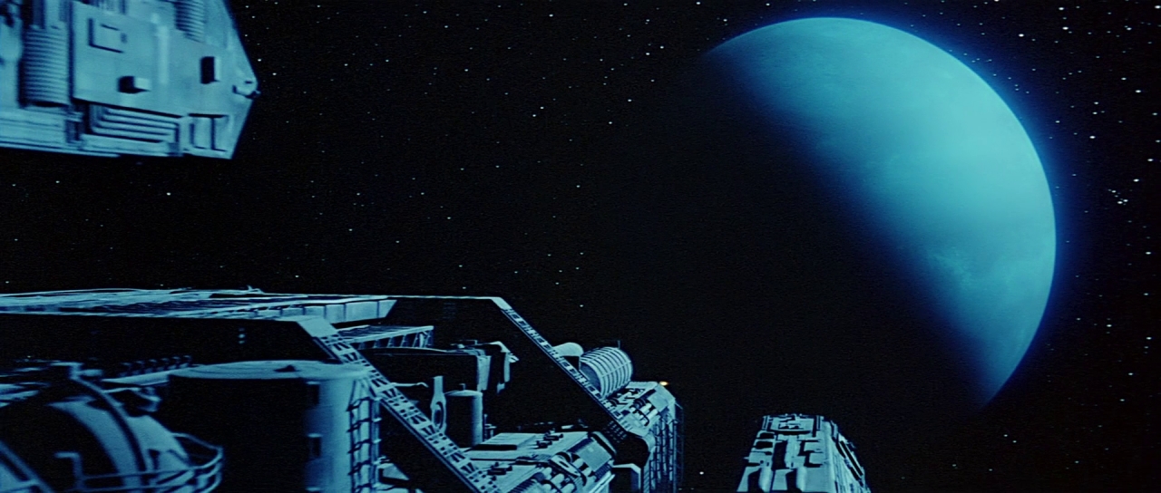 Przyczepiłbym się jeszcze do scenografii, jest, jak przystało na film science fiction ciemna, bura i ponura. Trzeba jakoś ukryć niedostatki jej wykonania. Bardzo mnie jednak rozczarował wygląd samego Księżyca 44. Z orbity Moon 44 wygląda identycznie jak Moon 47. Nawet linia dnia i nocy się zgadza. Użyć dwa razy ten sam obraz, naprawdę, to tylko jakiś malunek…