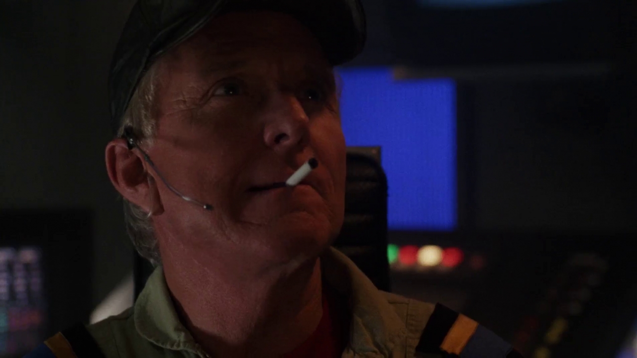 Wezwany na pomoc Paxton (Joe Turkel) sugeruje sterowanie ręczne, ma to wykonać Lesli (Camilla More), To jakaś robot czy coś w tym stylu, ma móc sterować statkiem (robot ma sterować ręcznie?). Twierdzi jednak, że na mostku wszystko… działa prawidłowo, to jednak nie da rady sterować ręcznie. Trzeba najpierw ustalić, co się stało, ewidentnie jest coś nie tak. Kiedy Paxton idzie na mostek, po drodze towarzyszą mu wybuchy iskier, a oświetlenie zamienia się na takie spotykane w dyskotekach, a w końcu światła przygasają (całkowicie nie mogą, aktorów by nie było widać). Ba! Nawet kontrolka o niebezpieczeństwie wybucha stopem iskier. Komputer zaś informuje o „naturalnej stabilizacji dynamicznej”. Według Paxtona energii starczy im około 336 godzin, równe dwa tygodnie. Przybyły również na mostek Jennings (John Diehl) ma odmienne zdanie, według będą to 24 godziny, o ile będą mieli szczęście. Mówi, że systemy wyglądają normalnie, ale są bardzo uszkodzone, nie ma reakcji, jakby… posiadały własny rozum. Nie potrafi wskazać, co się stało, o naprawach nie wspominając. Do niedziałających systemów trzeba doliczyć te zapasowe. Niedługo pojawią się problemy z powietrzem. Niby energię można by pozyskać z ogniw fotowoltaicznych, ale statek dryfuje w stronę Centrusa B40 (czytaj „Ciemnej Strony Księżyca”). Skończy się to zderzeniem z naszym naturalnym satelitą. Tylko, że ciemna strona Księżyca, to tak na naprawdę nie oznacza, że jest tam ciemno, a że jest niewidoczna z Ziemi. I, owszem, może być tam ciemno, ale nie musi. Ogniwa fotowoltaiczne mogłyby funkcjonować. Tylko, gdzie byłoby miejsce na emocje?